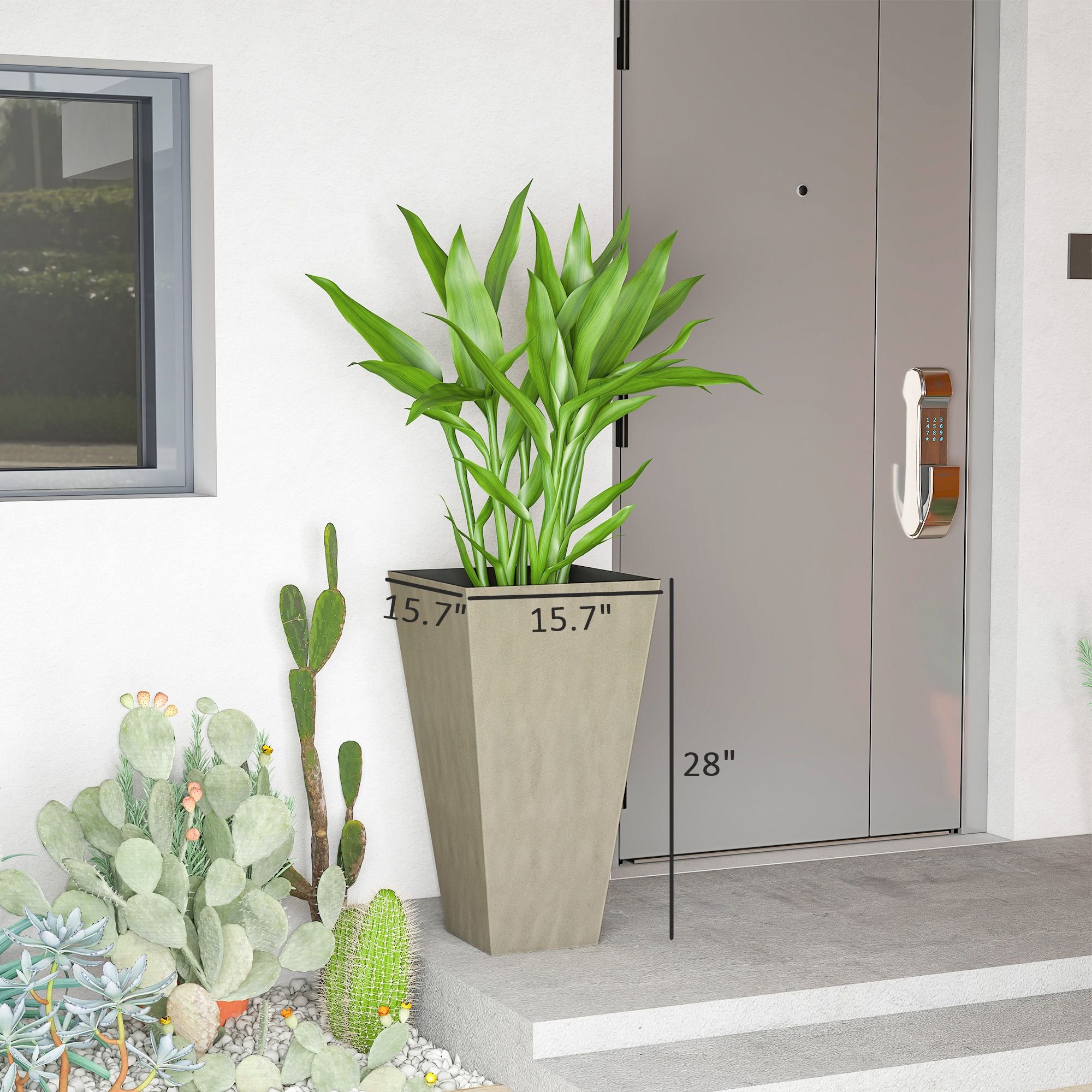 Home > Outsunny Set of 3 28" Tall Plastic Planterswith Drainage Hole, Outdoor Flower Plant Pots, Indoor Planters for Porch Patio and Deck, Gray