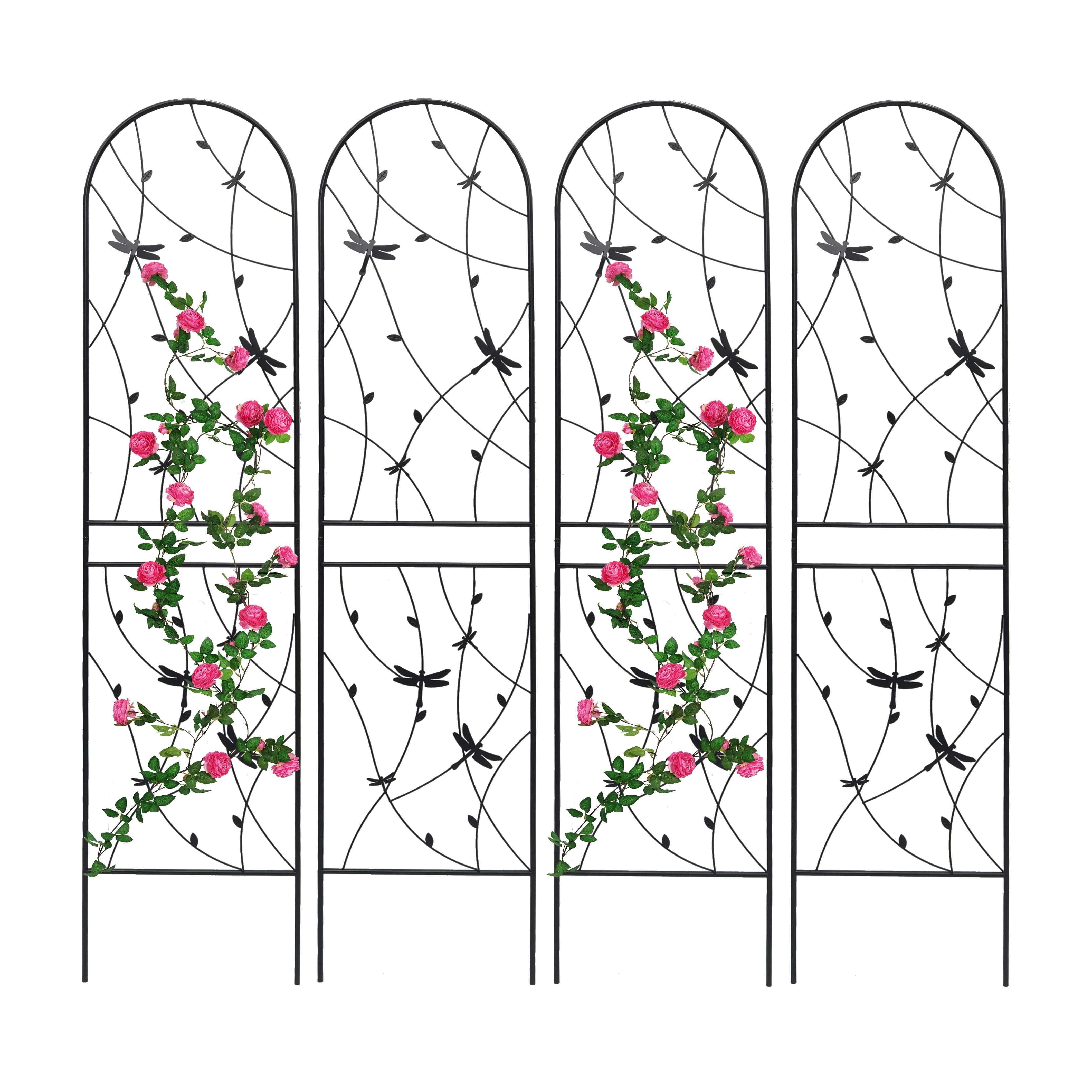 4 Pack Metal Garden Trellis 86.7" x 19.7" Rustproof Trellis for Climbing Plants Outdoor Flower Support Dragonfly Deco Black