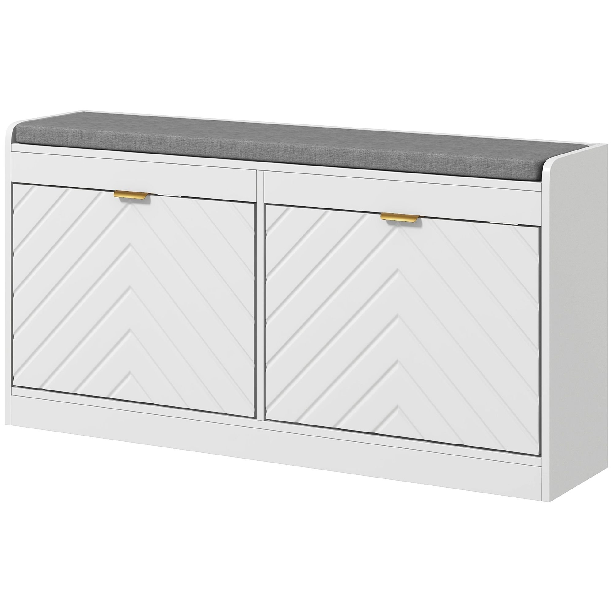 HOMCOM Upholstered Shoe Rack Bench Narrow with 2 Flip Drawers for 8 Pairs HOMCOM Upholstered Shoe Rack Bench Narrow with 2 Flip Drawers for 8 Pairs HOMCOM Upholstered Shoe Rack Bench Narrow with 2 Flip Drawers for 8 Pairs